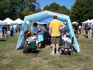 Kris at her first fiber festival (well, first one as a vendor, anyway).